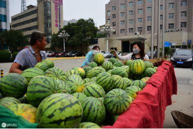 我赶紧拿出相机,对准这位网红。只见她一边吃瓜,一边与周围的人聊天,脸上洋溢着幸福的笑容。她的吃瓜姿势也很有特点,一只手拿着西瓜,另一只手轻轻拍打着西瓜,仿佛在享受着这份美味。